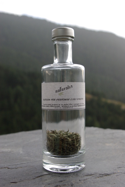 En una ampolla de 25 cl, hem posat una quantitat òptima de sajolida (Satureja montana) conreada a casa nostra i que us permetrà, quan hi afegiu oli d'oliva del que més us agradi, obtenir després d'uns dies d'espera, un oli perfumat ideal per donar aquell punt especial a amanides, torrades, etc.